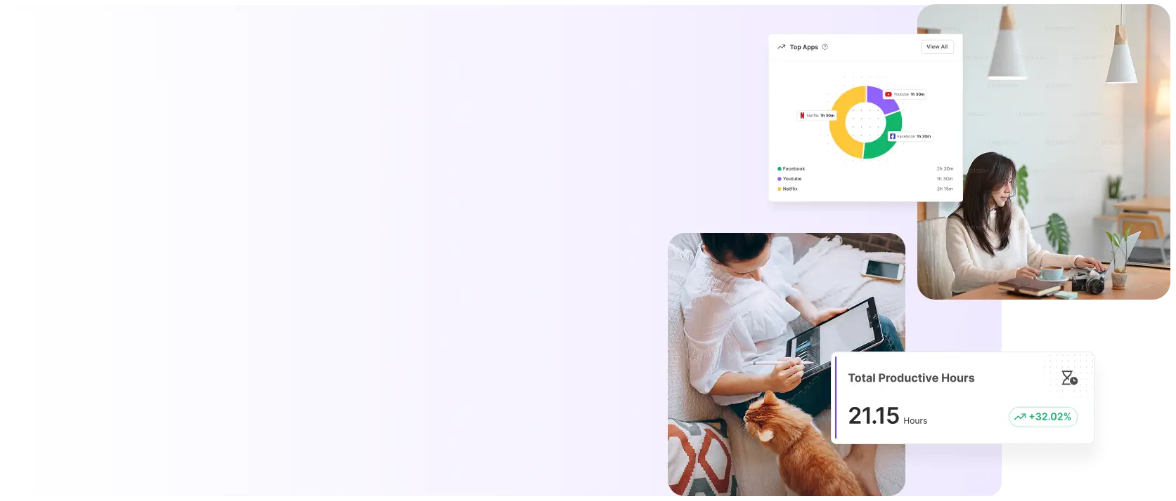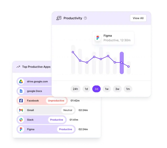 Measures employees productivity using insights on time spent, apps/websites usage, and work patterns.
